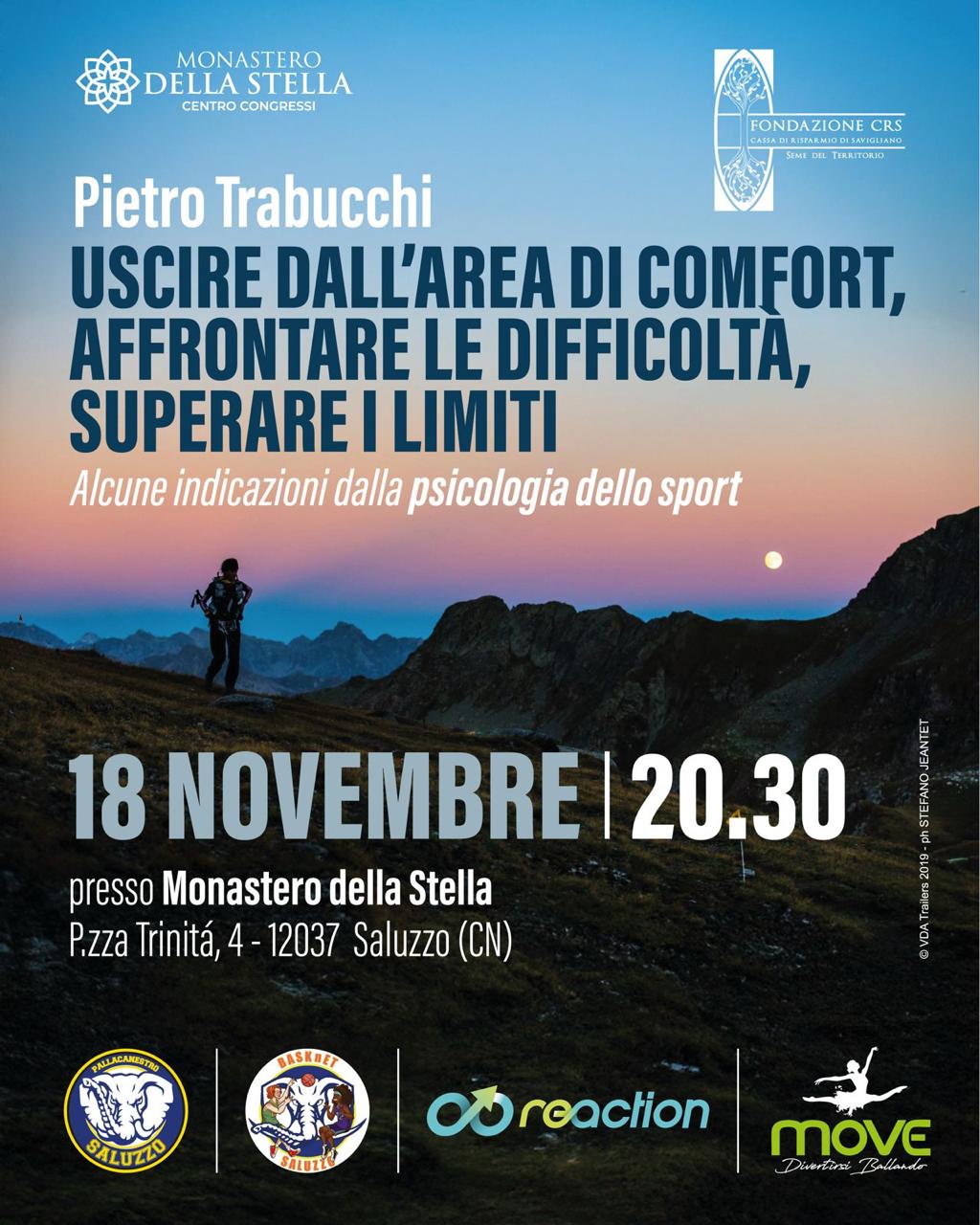 Il 18 novembre prossimo vi aspetto a Saluzzo per una nuova serata incentrata sulla psicologia dello sport.Usciare dall'area di comfort, affrontare le difficoltà e superare i limiti ... indicazion idalla psicologia dello sporti. Non mancate!