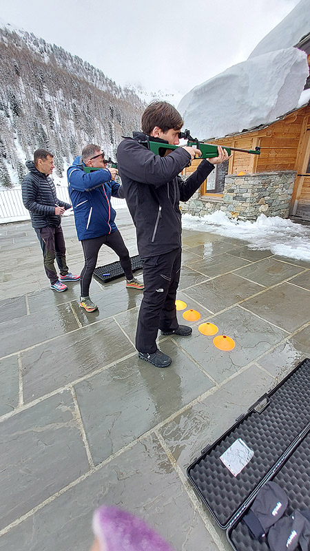 A volte si tratterà anche di fare cose un pochino sfidanti, che cambiano in funzione della stagione e della tipologia dei partecipanti: salire montagne, sparare a sagome in movimento, sopportare e gestire un po' di fatica o qualche emozione...